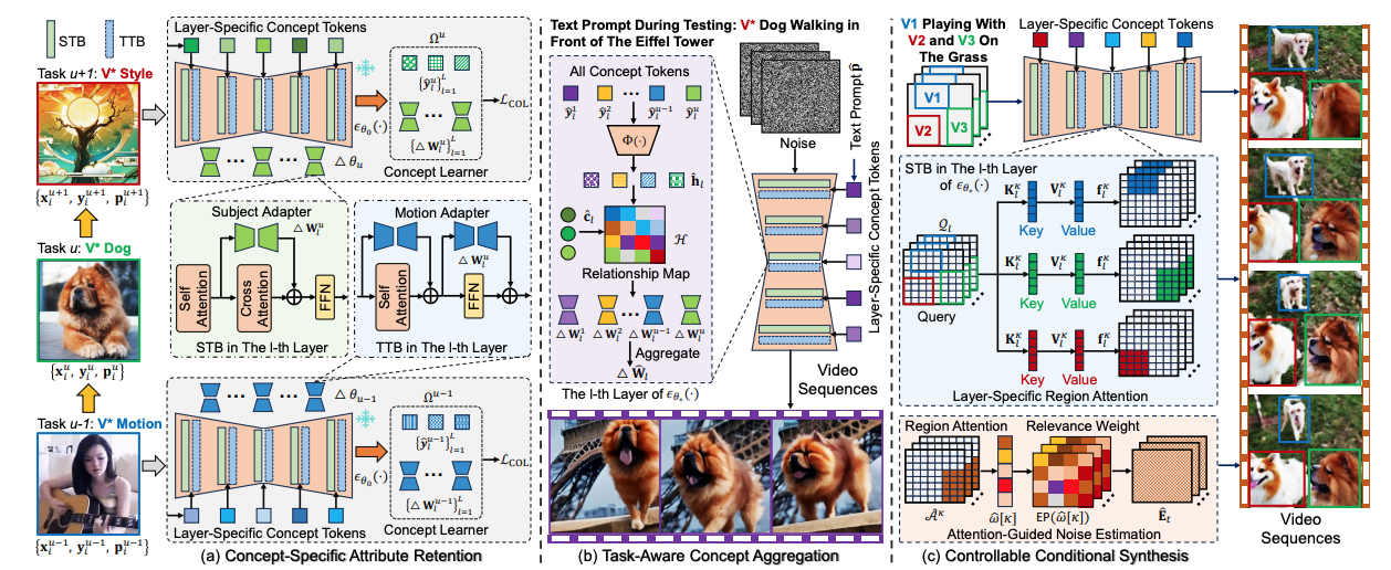 Customized text-to-video generation (CTVG) has recently witnessed significant progress in generating tailored videos from user-specific text. However, existing CTVG methods unrealistically assume that personalized concepts remain static and do not expand incrementally over time. Additionally, they struggle with catastrophic forgetting and concept neglect when continuously learning new concepts, including subjects and motions. To resolve the above challenges, we develop a novel Continual Customized Video Diffusion (CCVD) model, which can continuously learn new concepts to generate videos across various text-to-video generation tasks by tackling catastrophic forgetting and concept neglect. Specifically, to address catastrophic forgetting, we introduce a concept-specific attribute retention module and a task-aware concept aggregation strategy. They can capture the unique characteristics and identities of old concepts during training, while combining all subject and motion adapters of old concepts based on their relevance during testing. Furthermore, to tackle concept neglect, we develop a controllable conditional synthesis to enhance regional features and align video contexts with user conditions, by incorporating layer-specific region attention and attention-guided noise estimation. Experimental comparisons demonstrate that our CCVD model outperforms existing CTVG models.